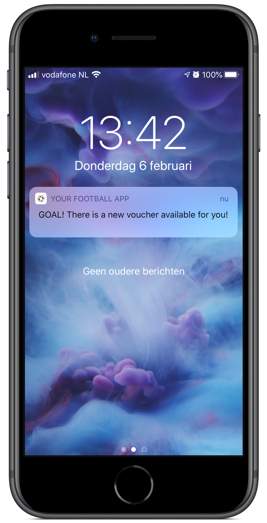 Make sure that you stay involved with your business relations from the sidelines. YOURFOOTBALLAPP can send push messages before, during and after the matches. You decide the message content and when it should be send to your users, your business relations! Direct interactive marketing at its finest.